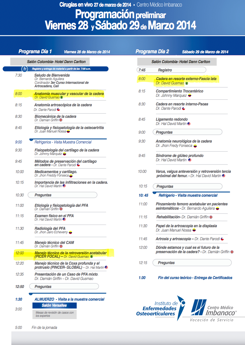 Embarco hoje (26/03/2014) para o 3º Curso de patologías de Cadera suscetibles al manejo Artroscópico - www.osteoarticularimbanaco.com. Evento organizado pelo Dr. Bernardo Aguilera do Hospital Imbanaco.