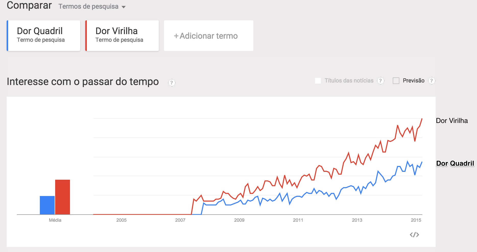 Vejam a busca realizada sobre sintomas articulares de 2004 a 2015.